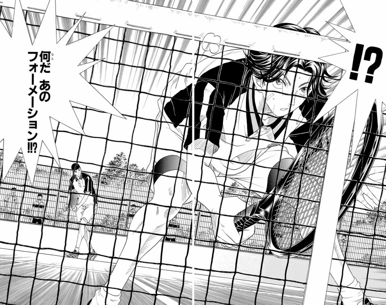 使用者は大石秀一郎、菊丸英二。大石サーブ時に前衛の菊丸にセンターラインをまたぐように位置取らせ、サーブと同時にお互いが左右に動き、相手に打つコースを迷わせる高難度フォーメーション。大石・菊丸の息の合ったコンビネーションのなせる技。菊丸が動いた方向の後ろがガラ空きとなるので、そこへのロブが急所となる。