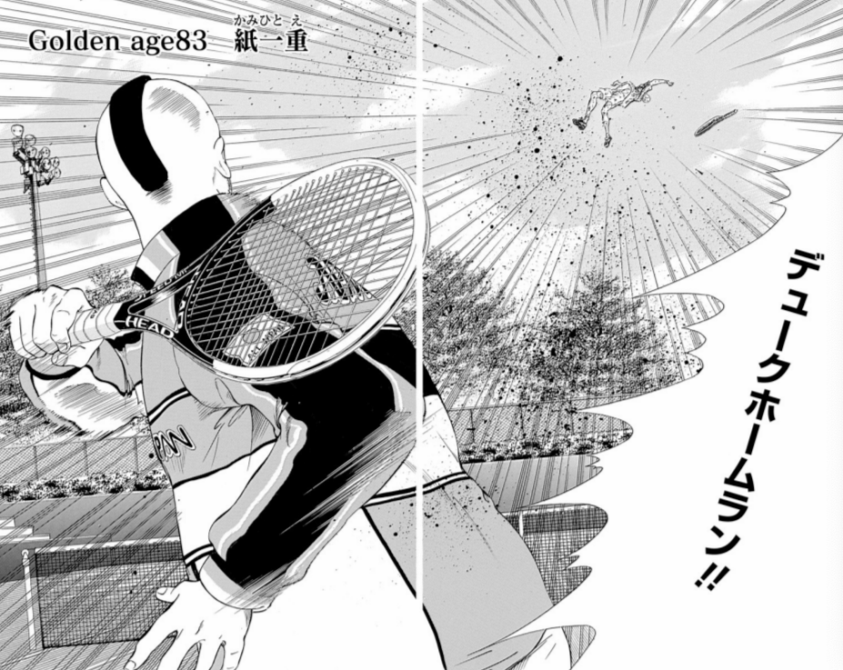 使用者はデューク渡邉。 徳川の阿修羅の神道をも破壊するパワーを引き出せる別次元のテニス。 ▼デューク渡邉の他必殺技はこちら▼ https://wazameikan.com/%e3%83%87%e3%...