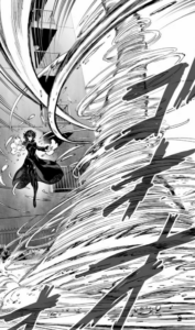使用者は地獄のフブキ。念力で周囲の瓦礫を操り嵐を巻き起こしていく技。