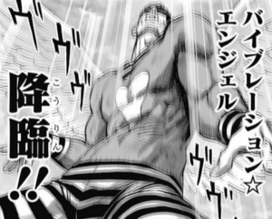 バイブレーション☆エンジェル 使用者はぷりぷりプリズナー。 電気・冷凍・熱・毒などの攻撃で体に蓄積したダメージから生じた体の震えを利用したスタイル。触れるだけで石壁を砂状に粉砕するほどの振...