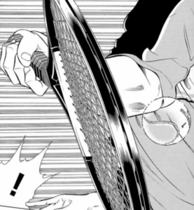 予測してプレーする相手に対し、打つ瞬間にコースを変えることであるはずのない打球を追わせてしまう技。相手はまるでボールがガットをすり抜けるように映っていく。手塚のような才能ある選手に対して有効だった。