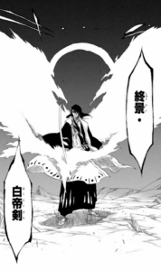 使用者は朽木白夜。 千本桜景巌の全ての刃を圧し固め、翼のような形状の一振りの刀に変えていく技。 ▼朽木白夜の他技はこちら▼ https://wazameikan.com/%e6%9c%bd%e6%9c...