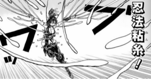 使用者は杠。 粘糸を口と両手の指で引いて飛ばす忍術。 ▼杠の他技はこちら▼ https://wazameikan.com/%e6%9d%a0%e3%81%ae%e5%bf%85%e6%ae%ba%e6%8a%80%e4%b8%80%e8%a6%a7/