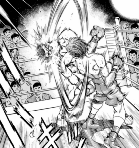 上と下からほぼ同時のタイミングで左アッパーとチョッピング・ライトを叩き込むコンビネーション技。その姿は獲物に襲いかかって肉をひきちぎる獣を彷彿とさせる。コンビネーションのスピードは速水のショットガンよりも速い。