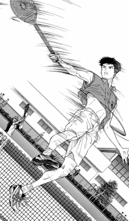 使用者は黒羽春風。空中で回転し遠心力を活かしながら放つバックハンドショット。