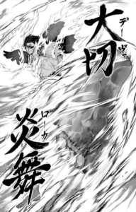 使用者は釈迦。荒神の戦鎌(サラーカァヤス)の龍の頭部から炎を噴射させ、その勢いで切りかかる技。