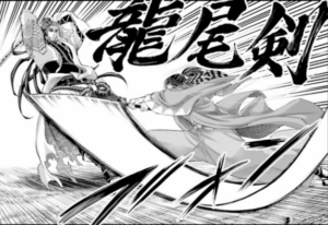 使用者は佐々木小次郎。逆手で刀を握り斬りかかる技。