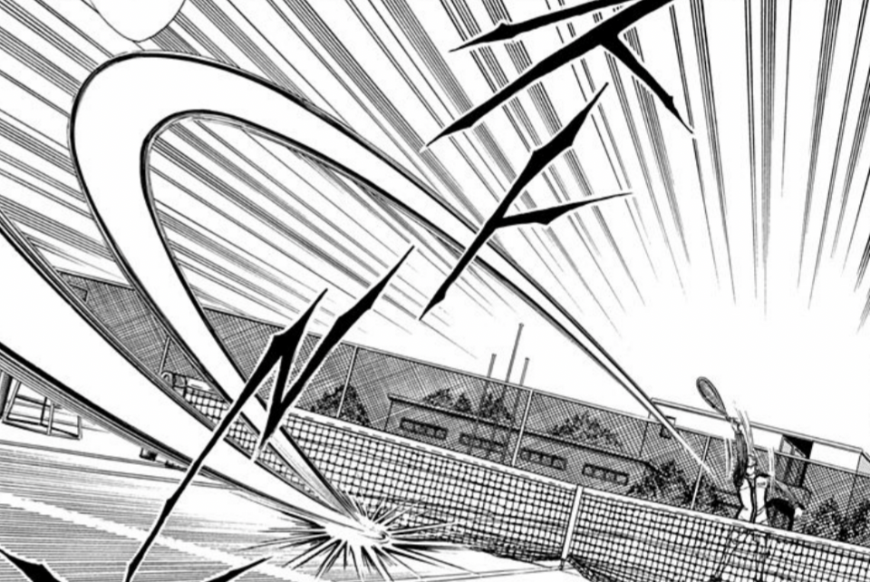 使用者は海堂薫。右足から左足へ体重が移動する瞬間にラケットを大きく振り抜き異常なスピン回転をかけるショット。逆のサイドまで強烈に曲がっていく超アングルショットとなる。一撃で決める場合もあるが、連発し相手を左右に走らせ体力を削っていくとい... -