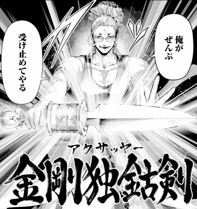 使用者は釈迦。 六道棍を独鈷杵に短剣が付いた形態に変形させる。凄まじい剣捌きを発揮でき、零福の斧爻嵐陣をも捌き切っていた。 ▼釈迦の他技はこちら▼ https://wazameikan.com/%e9%87%88%e8%bf%a6%e3%80%90%e7%b5%82%e6%9c%ab%e3%81%ae%e3%83%af%e3%83%a... -
